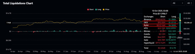 Несмотря на технические трудности, Binance не стала рекордсменом по отдельным позициям в ликвидациях. К примеру, ликвидации лонговых позиций на бирже Bybit превысили аналогичные показатели Binance в несколько раз — $4,3 млрд против почти $1,4 млрд соответственно.