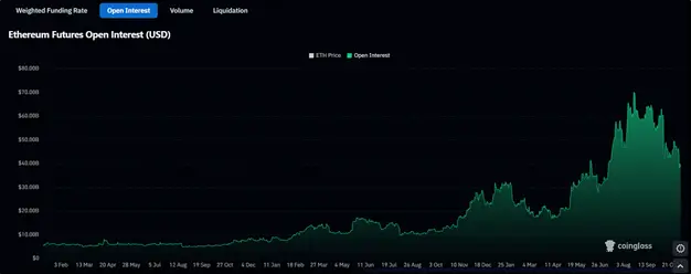 Одним из катализаторов снижения эфира могло стать падение активности в сети. С середины августа, когда ETH был на своем ценовом максимуме года, количество активных адресов снизилось с 480 000 до 360 000, что эквивалентно 24%. У пользователей снизился спрос на экосистему Эфириума. Как несложно догадаться,  падение цены и активности в сети шли параллельными курсами, ввиду чего можно сделать вывод о корреляции.