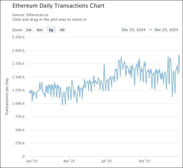 Сеть Эфириума 23 декабря установила рекорд года по количеству транзакций за день. Одновременно с этим средняя комиссия оказалась очень небольшой, $0,16. Таким результатам Эфириум обязан своим двум недавним хардфоркам, Pectra и Fusaka. Первый увеличил масштабируемость, оптимизировав взаимодействие решений второго уровня (L2) с главной сетью. Второй сделал размер блоков в Эфириуме больше почти на треть. Иными словами, в каждый блок появилась возможность добавлять большее количество транзакций.