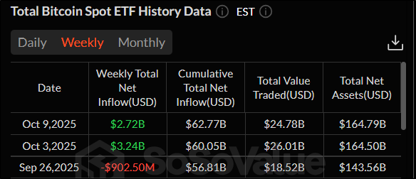 Спотовые ETF на биткоин вновь продемонстрировали положительную динамику. Вторую неделю подряд приток денежных средств в эти биржевые фонды превышает $2,7 млрд. Институциональные инвесторы по-прежнему верят в рост крупнейшей по капитализации криптовалюты.
