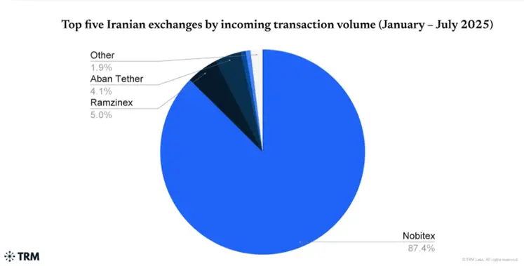 Несмотря на то, что взлом Nobitex подорвал доверие клиентов к местным платформам, главная криптобиржа страны сохраняет лидерство, обрабатывая свыше 87% всех транзакций. Из $3 млрд, прошедших через площадку, $2 млрд пришлись на сеть TRON, уточнили эксперты.